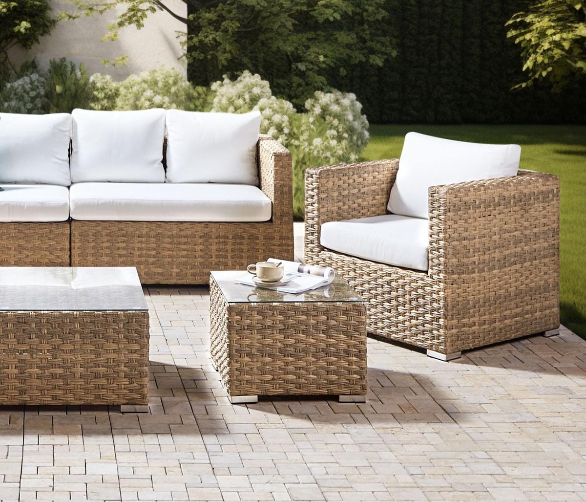 Write an evaluation for "Rattan garden furniture set Toskana light brown XXL rattan lounge for garden terrace balcony couch rattanlounge"