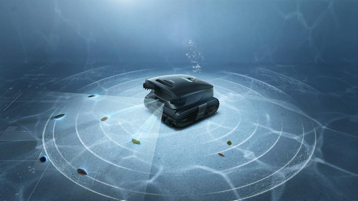 Equipped with 29 intelligent sensors and an AI camera, the AquaSense X precisely analyzes the entire pool environment.