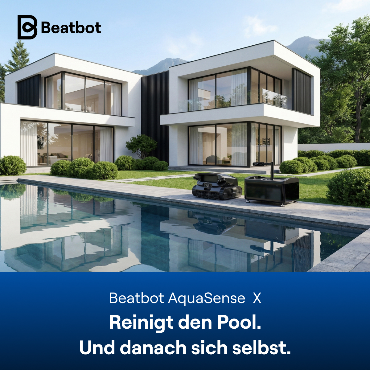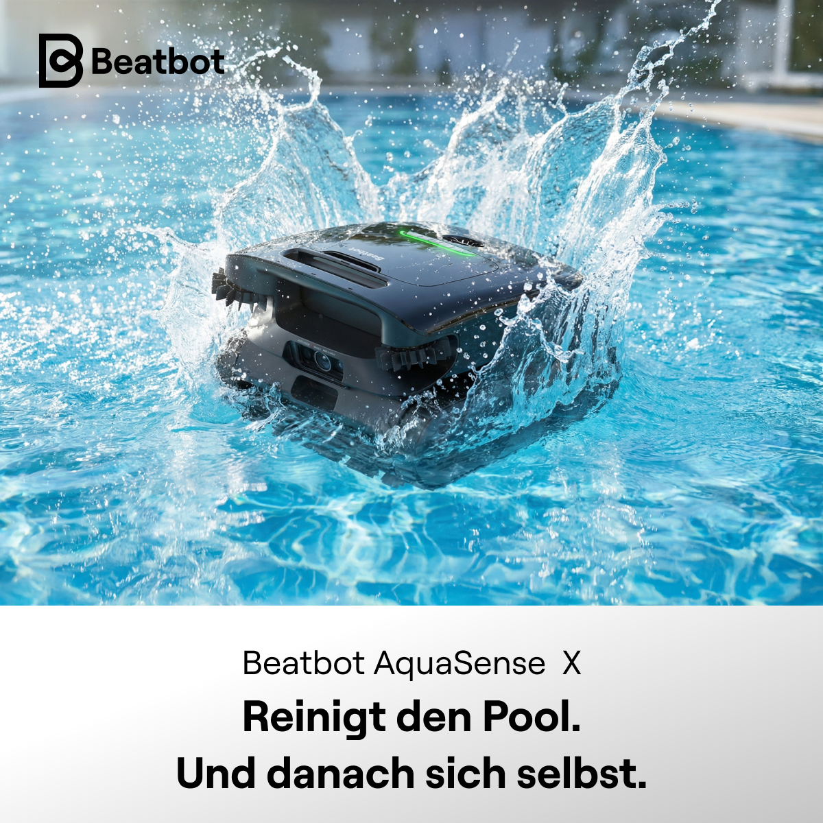 The Beatbot AquaSense X sets new standards in modern pool maintenance. As the world’s first robotic pool cleaner with an integrated self-cleaning and charging station, it not only performs complete pool cleaning — but automatically cleans itself afterward.