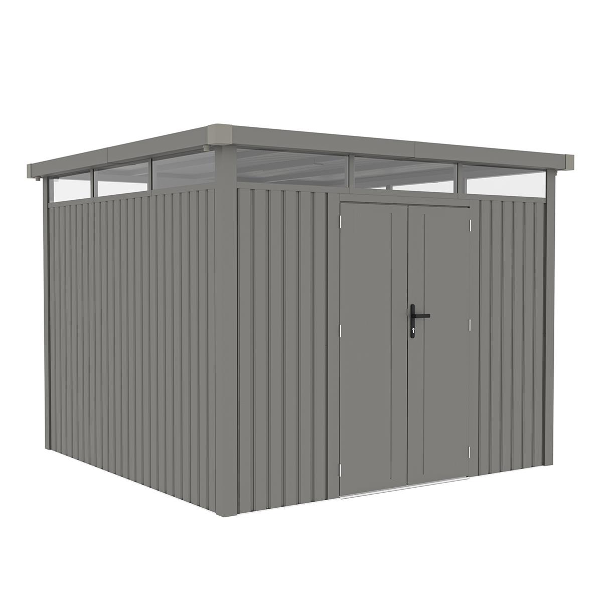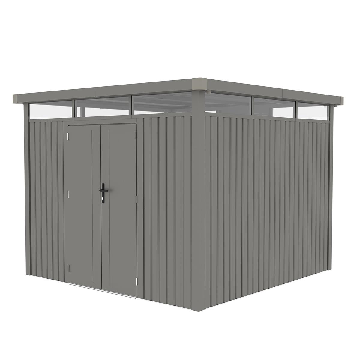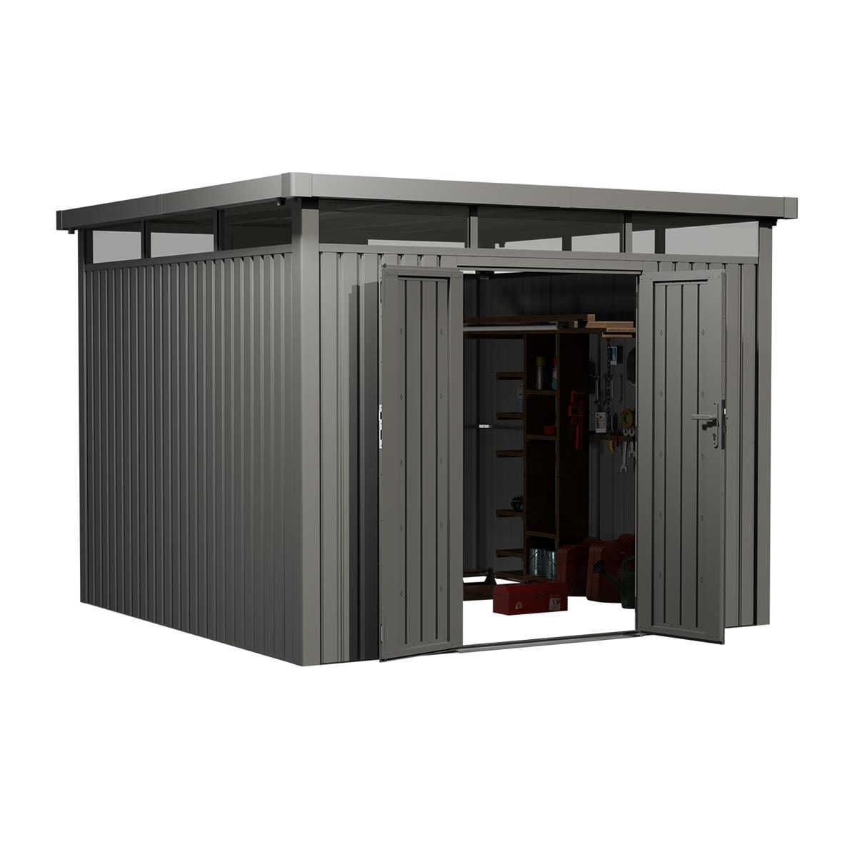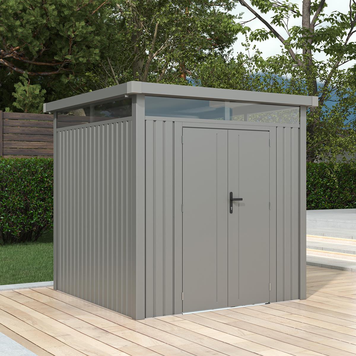 Modernes Metall Gartenhaus "Lyon" mit abschließbaren Türen und Tageslicht Fenster, in 3 Größen mit 5,3 m², 6,8 m² oder 8,6 m² Fläche - ideal für Gartengeräte, Fahrräder und Werkzeug