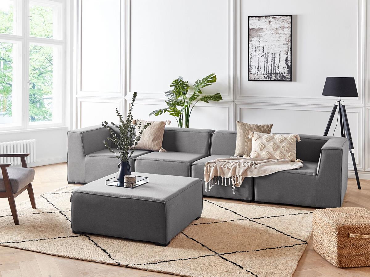 Sehr stabil und sehr langlebig durch hochwertiges Metallgestell und wasserabweisendem Bezug in der Farbe grau! Individuell aufstellbar: gerade, L-förmig rechts / links oder einzeln dank modularer Elemente!