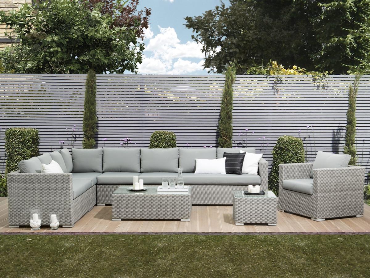 Rattan Gartenmöbel Set Toskana hellgrau XXL Sitzgruppe Rattanlounge für Garten Terrasse Balkon Rattanmöbel GRAU