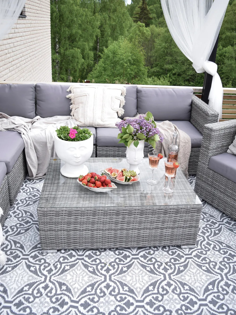 Das Gestell besteht aus massiven pulverbeschichteten und rostfreien Aluminium. Die meisten herkömmlichen Gartenmöbel sind nur mit minderwertigen Kunststoffgestellen verarbeitet, was keine besonders lange Haltbarkeit sicherstellt. Mit dieser edlen Loungegarnitur wird Ihnen dies nicht passieren!