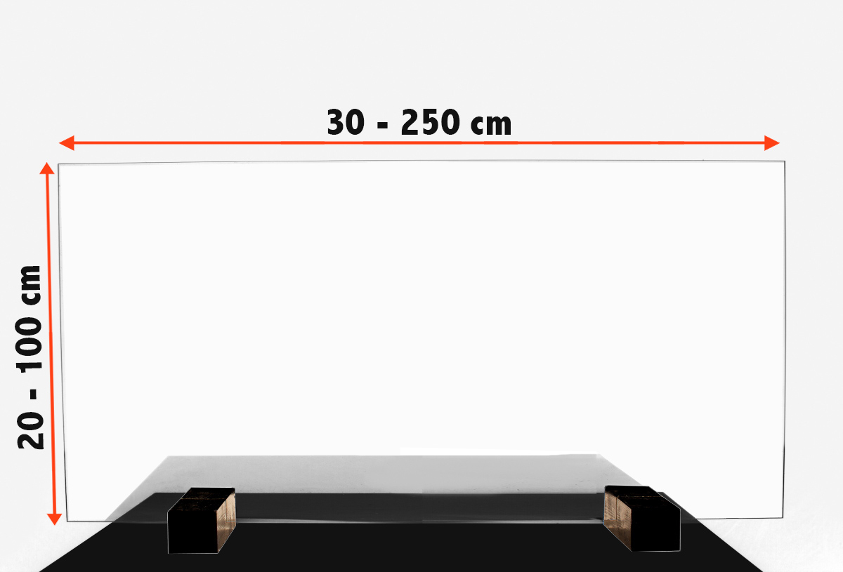 - Bei der Variante "Zum Aufstellen ohne Ausschnitt" können Sie eine bestimmte Fläche komplett schützen (zwischen Boden und Acrylglas sind nur noch ca. 2,5 cm Platz)