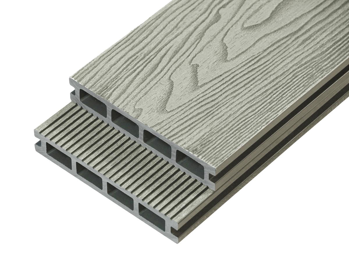 Sehr stabil, pflegeleicht, wartungsfrei und sehr langlebig durch hochwertigen Holz und Kunststoff Verbund (WPC = wooden plastic component übersetzt heißt das Holz Kunststoff Verbundwerkstoff) in der Farbe Antik / hellgrau. Unser WPC ist dank seiner speziellen und fühlbaren Oberflächenbeschaffenheit besonders rutschhemmend.
