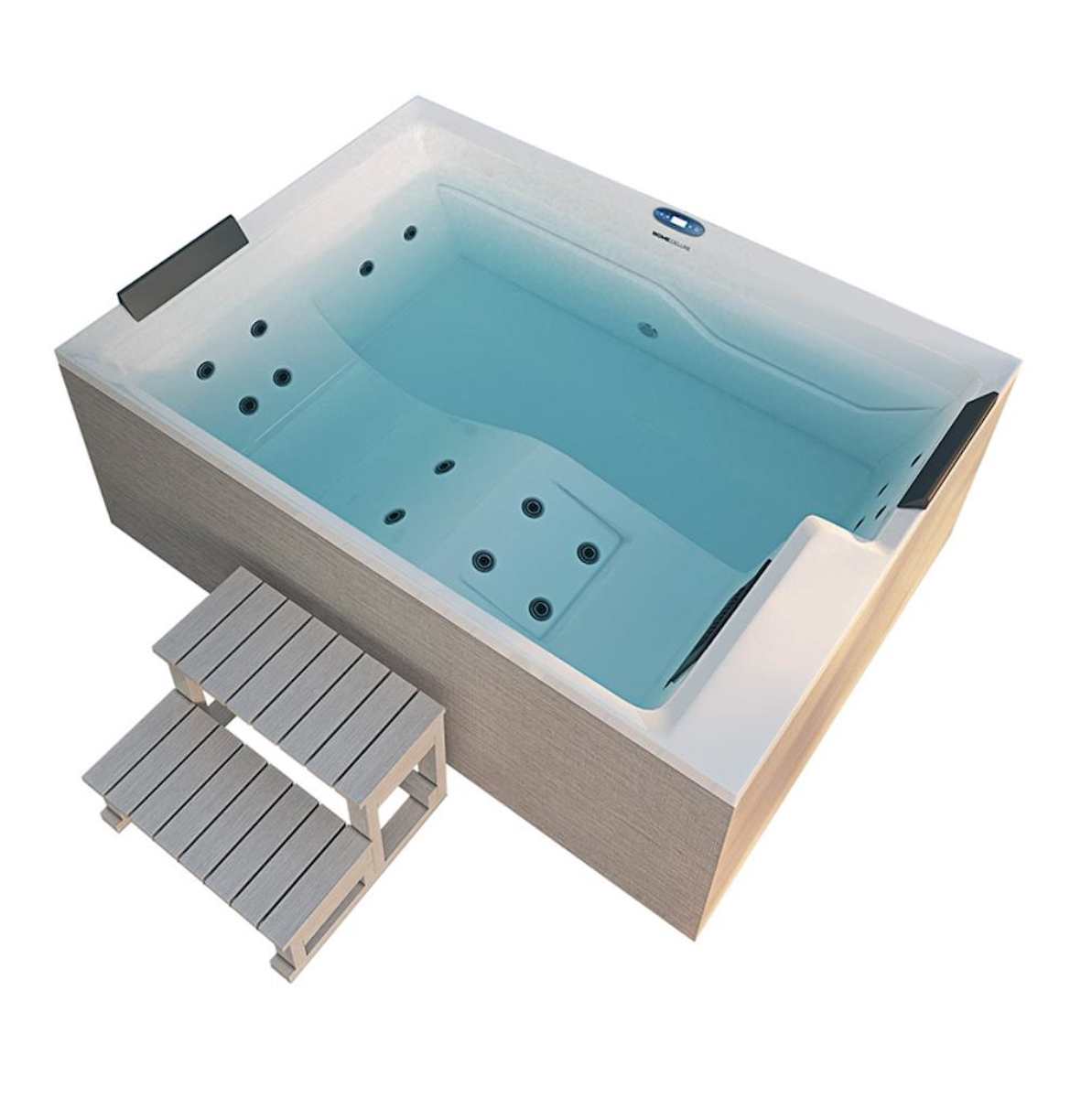 - Der Pool ist mit 2 ergonomischen Kopfstützen für bequemes und langes Sitzen ausgestattet